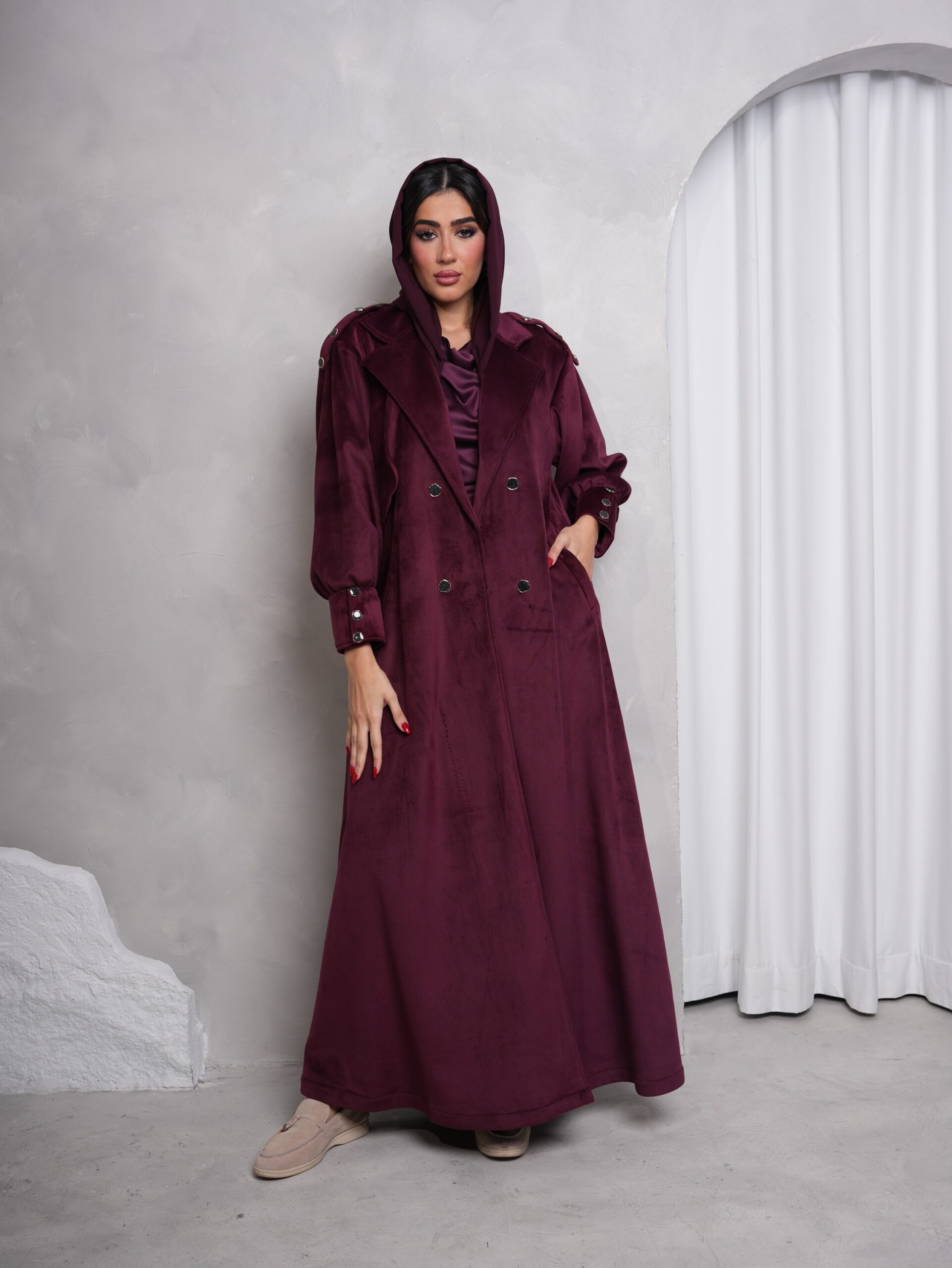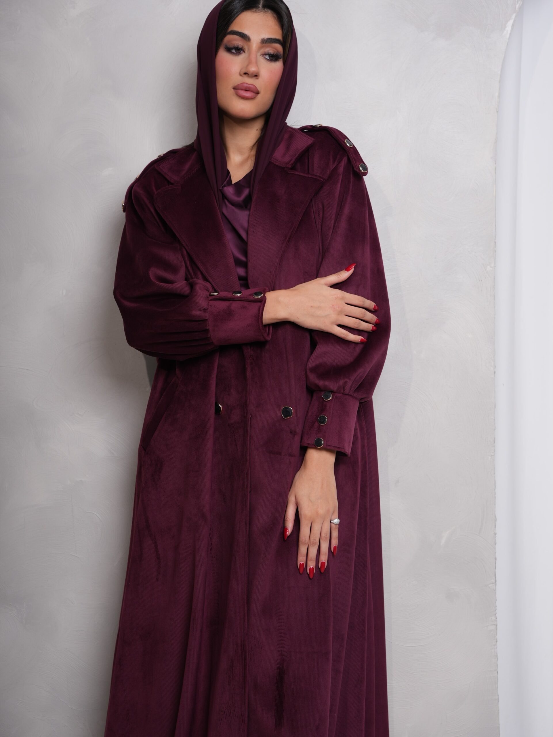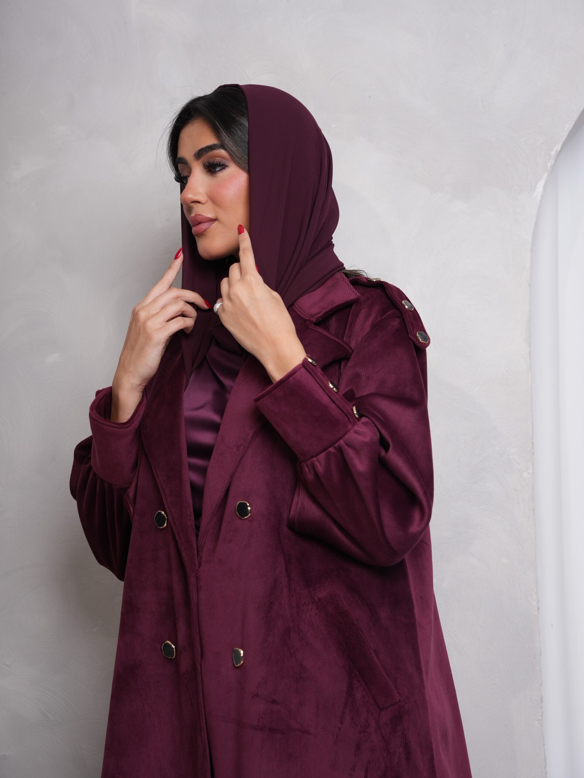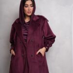 جكيت شتوي مخمل كورداي ، باللون العنابي