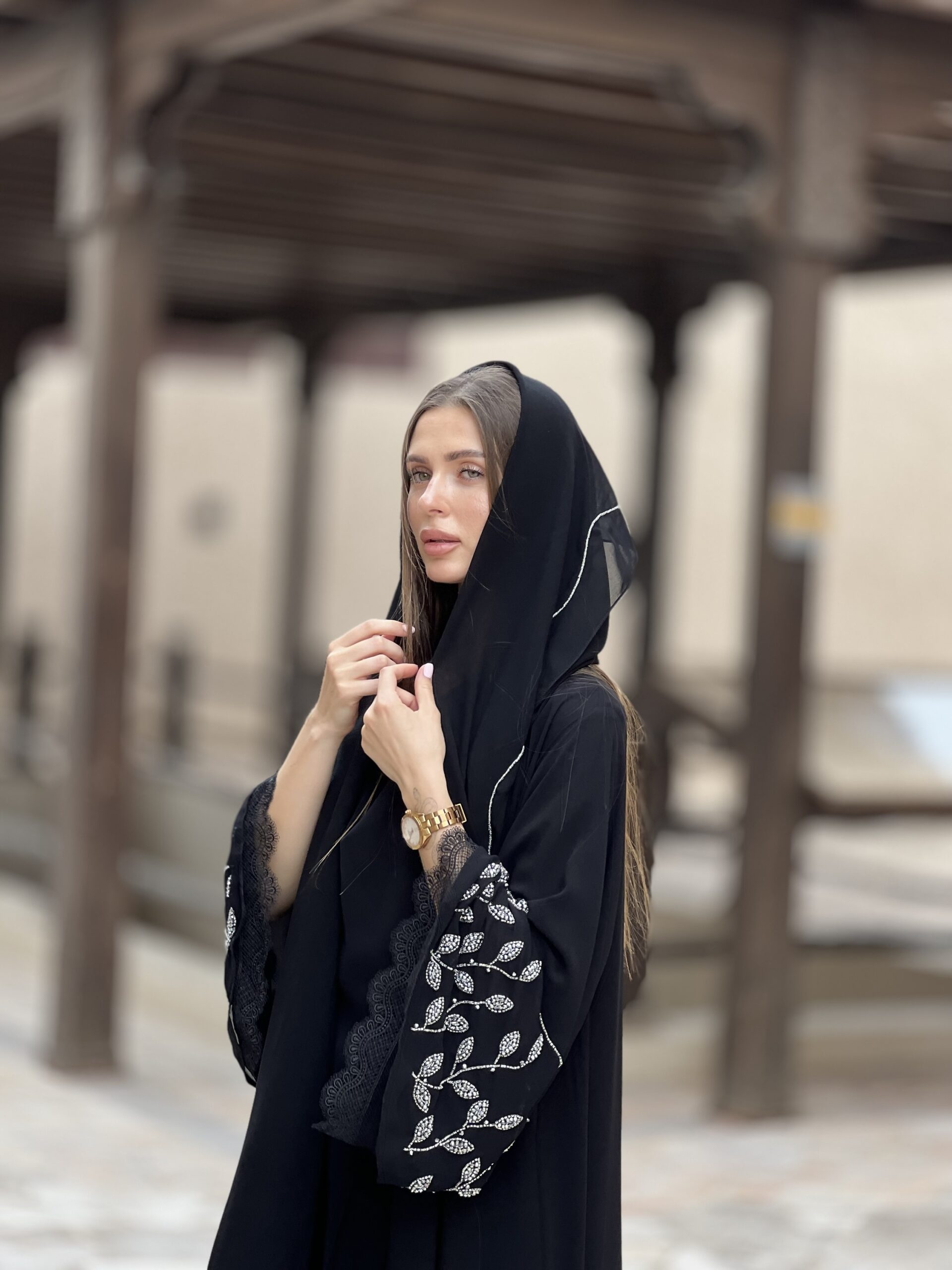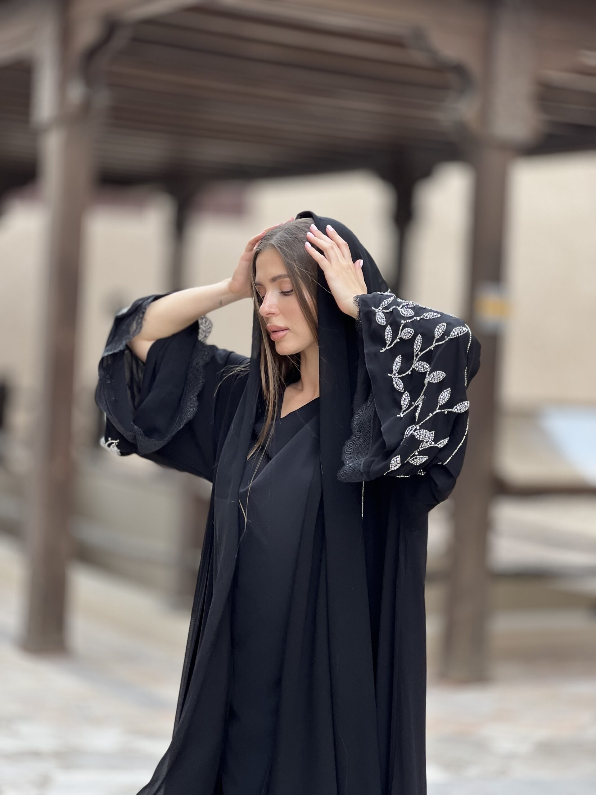 عباية سوداء بقماش دبل شيفون شك خرز يدوي ومميزة بالدانتيل على الاكمام و اسفل العباية ممكن تغيير اللون